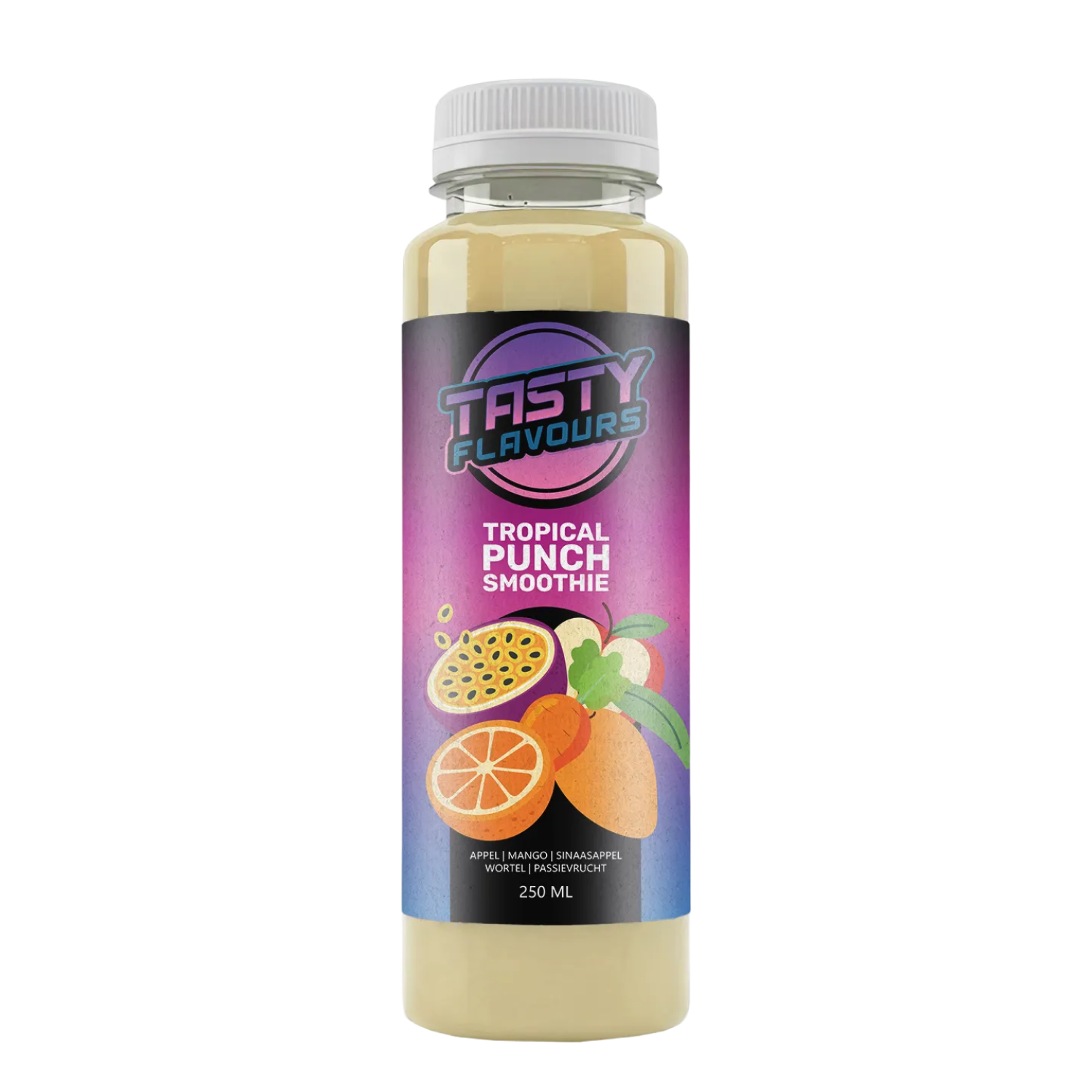 Ingrediënten: Appel 45%, Mango 22%, Sinaasappel 16%, Wortel 10%, Passievrucht 7%, Antioxidant: ascorbinezuur.